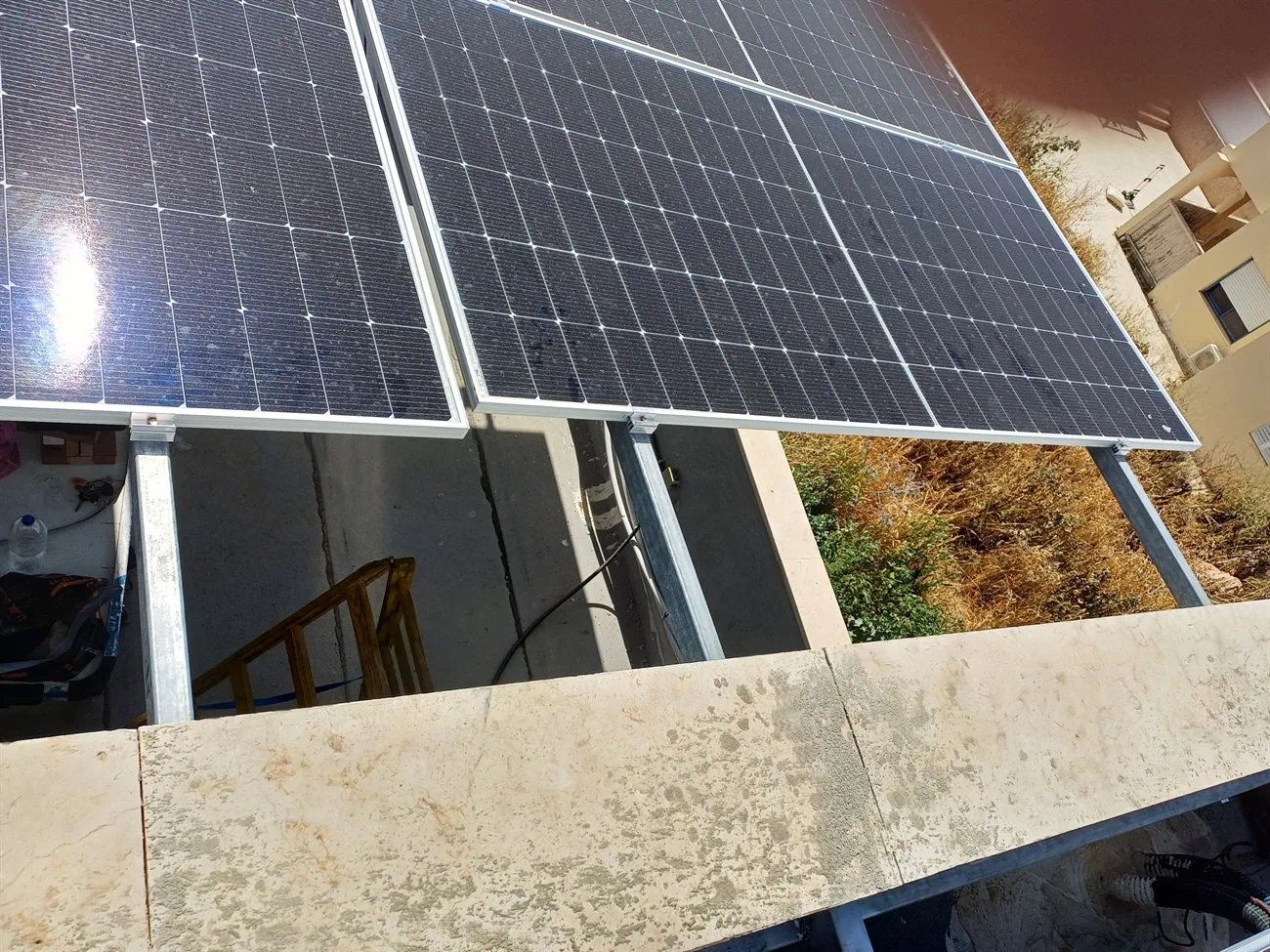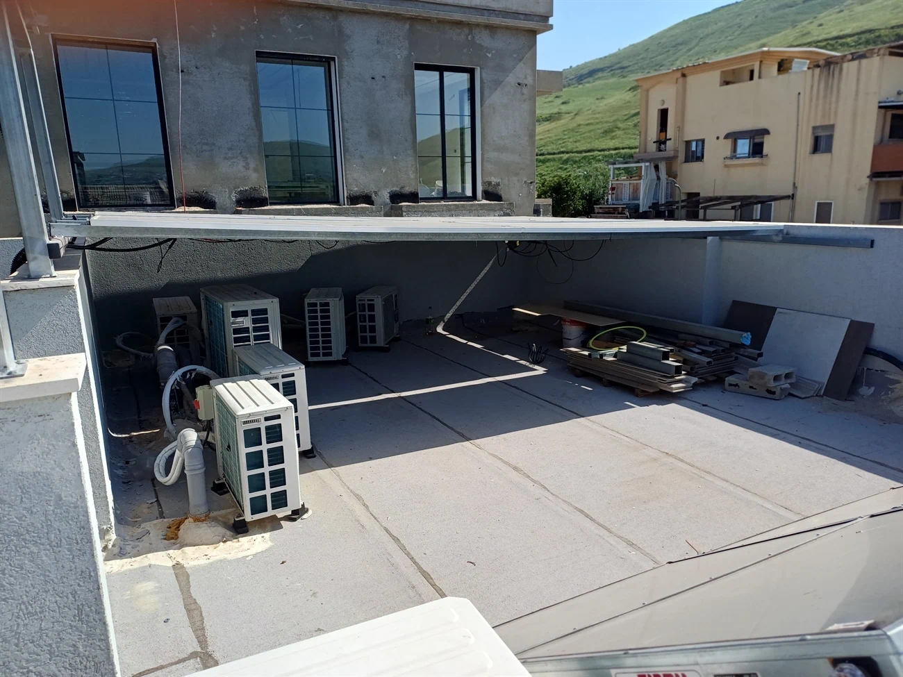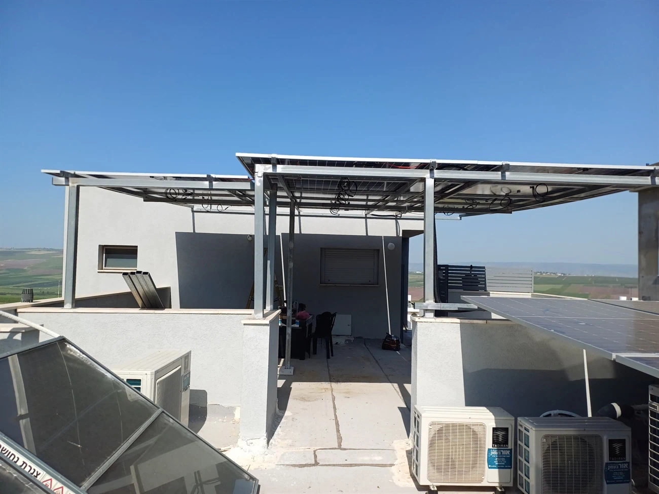 גג בטון בשילוב פרופילים ברזל  . ממיר GOODWE 15 קוואט